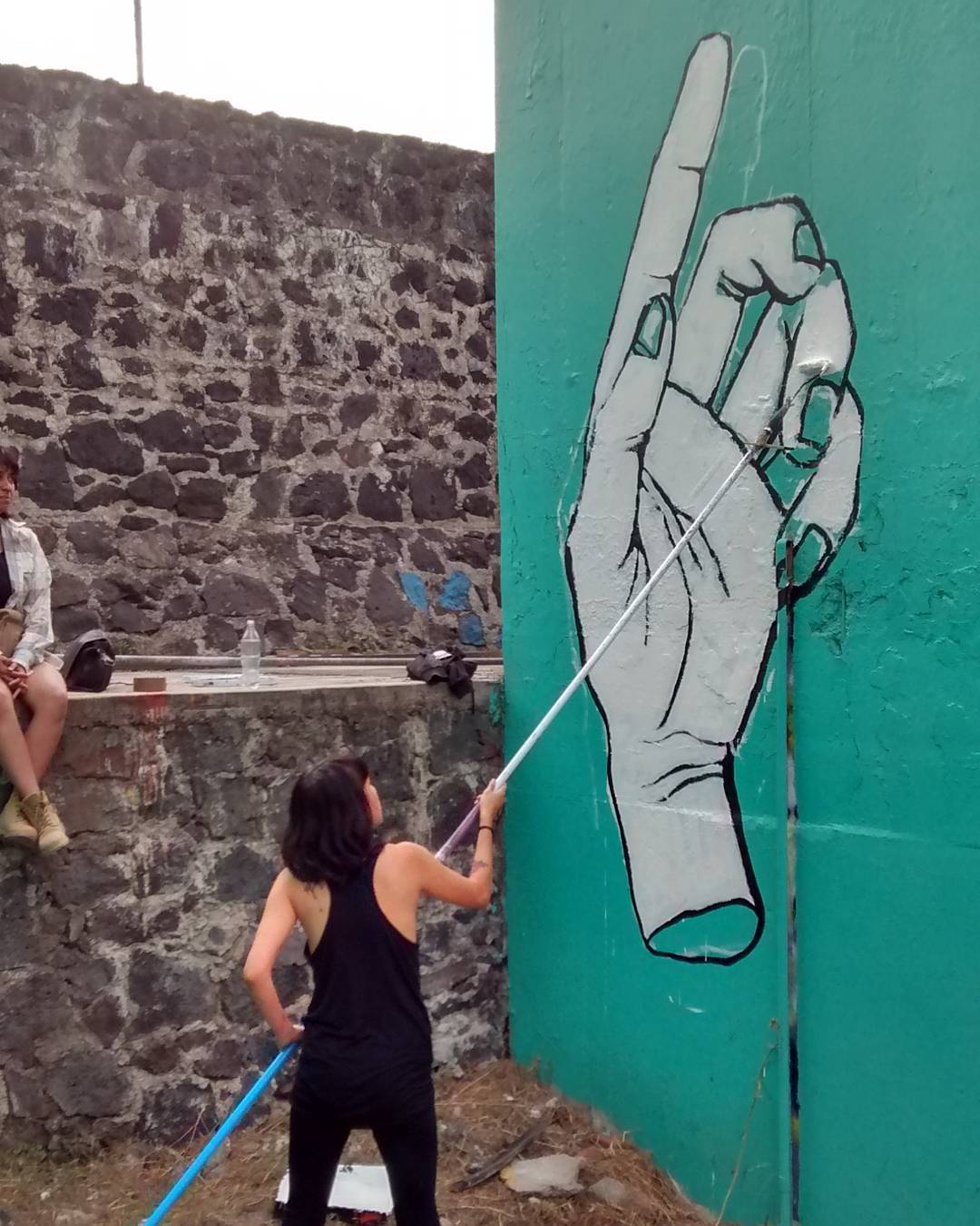 La pinta de hoy, en plena acción. #articuloscarmen #vlocke #tiemponuevo #efimerotaller #graficamural #streetartcdmx