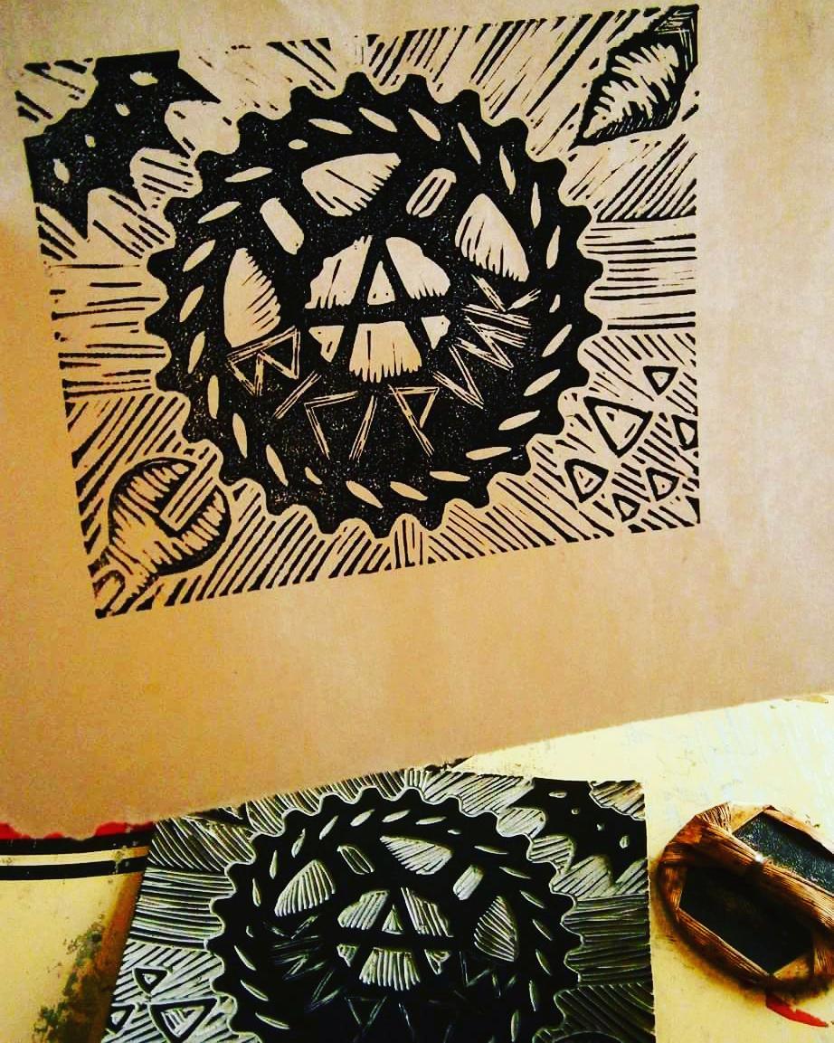 Bicipunk. Preparándonos para el viernes negro, rodada anarcociclista. #linoleum #grabado #rodada #anarquia #bikepunk #biciomuerte