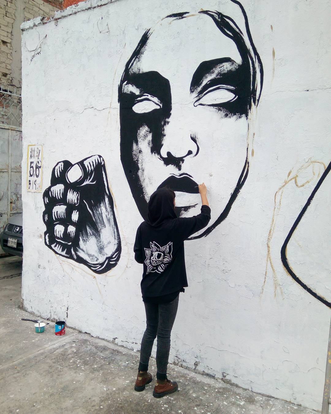 Nuevo muro con @articuloscarmen en la col, Obrera, nos agarró el aguacero, esperamos terminar, si el clima mejoran. Estamos en la calle de Torquemada, muy cerca del metro Chabacano y Lázaro Cárdenas. Pasen a visitar con un paraguas y botas.