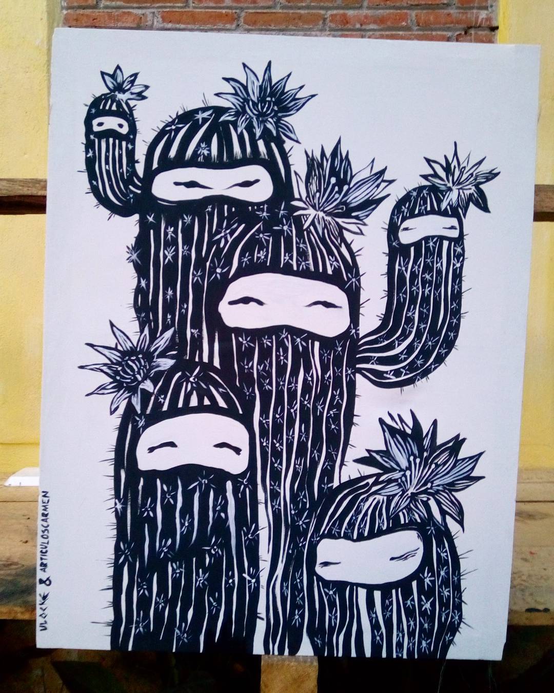 Lienzo que pinté con @articuloscarmen en el festival #comparte2017 . #canvas #cactus s #zapatistas #articuloscarmen #ezln #cideci #sancristobal #chiapasstreetart