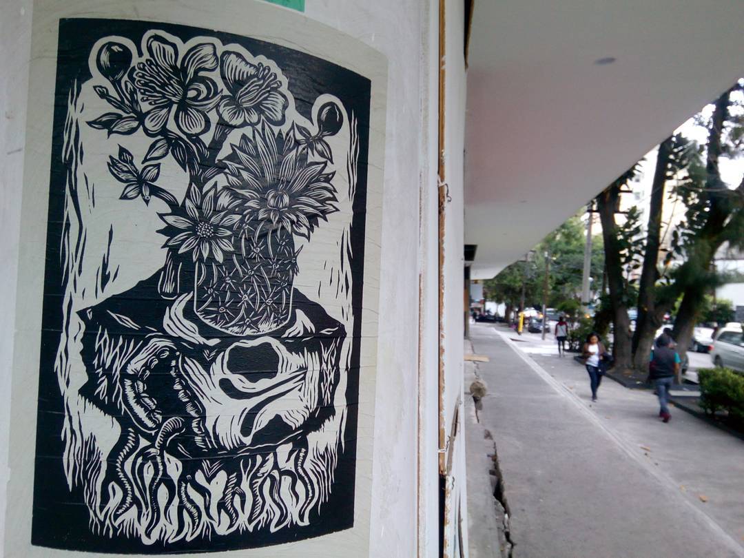 Av.Insurgentes, col. Roma De la seriƩ: Esporas Negras. #grabado #realstreetart #pegas #vlocke #avinsurgentes #globalstreetart #streetartcdmx
