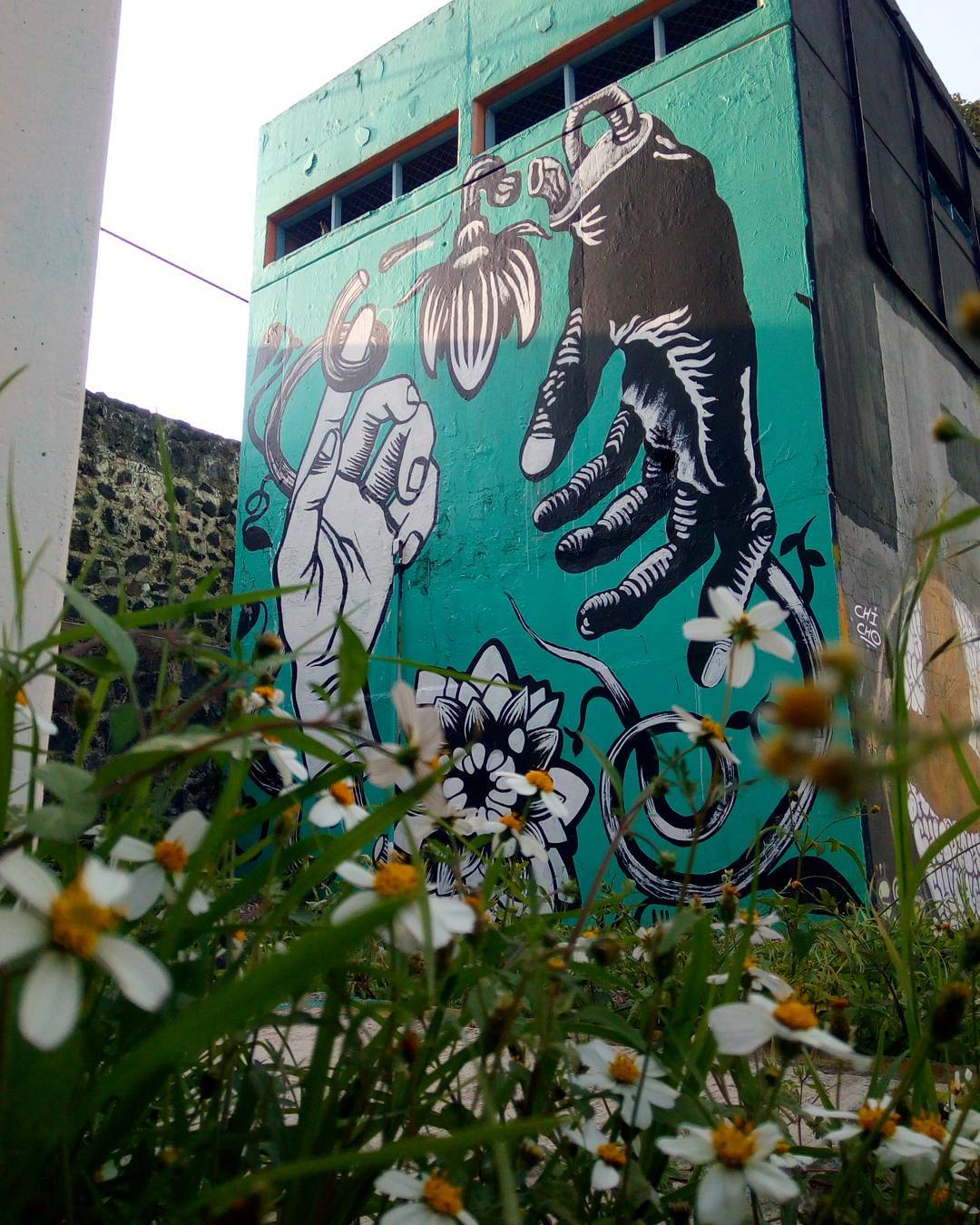 Por ahà me encontré esta foto, de un viejo muro con @articuloscarmen onelove!! #creciendojuntos #amorts #manos #noscopioelcopion #blackandwhite #graficamural #streetartcdmx #globalstreetart