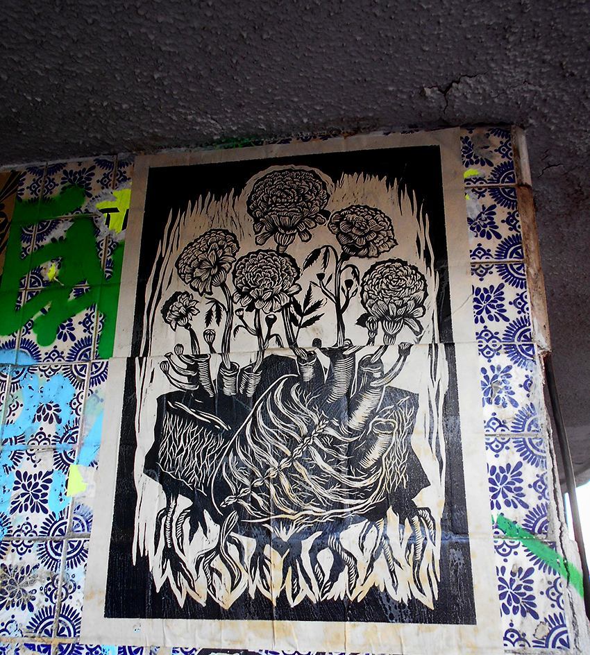 Corazón de cempasúchil #grabado #esporasnegras #calle #cempasúchil #vlocke #laobrera #pegas #vlocke #pasteup #printmaking #woodcut #globalstreetart #streetarrmexicocity