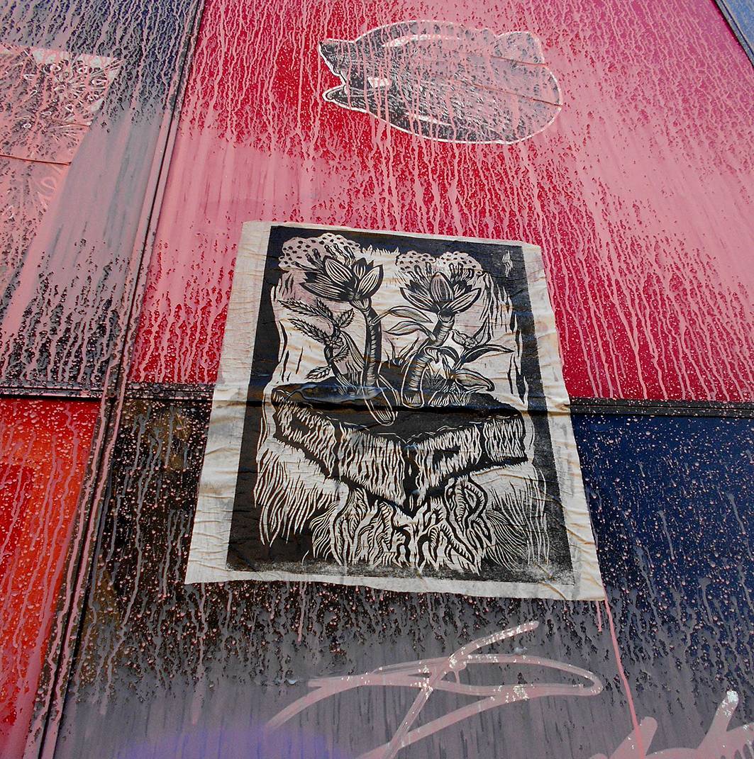 Hoy salimos a pegar, en la colonia Roma. #esporasnegras #grabado #linocut #vlocke #complices #woodcut #papelrevolucion #printmaking #wheatpaste #streetart