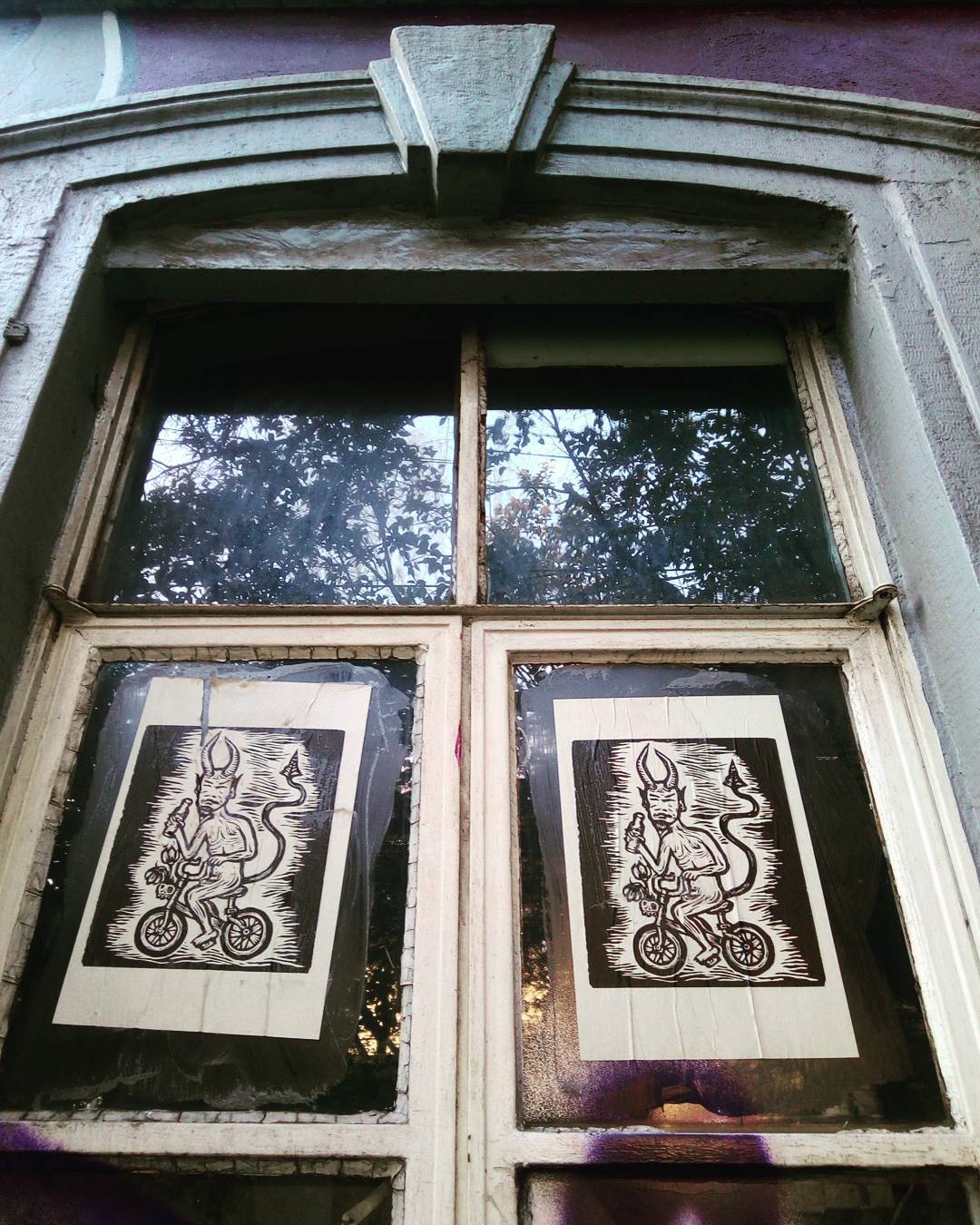Diablito en bicicleta #vlocke #linocuts #carbing #bike #evilbike #pegas #streetartcdmx #printmaking #woodcut