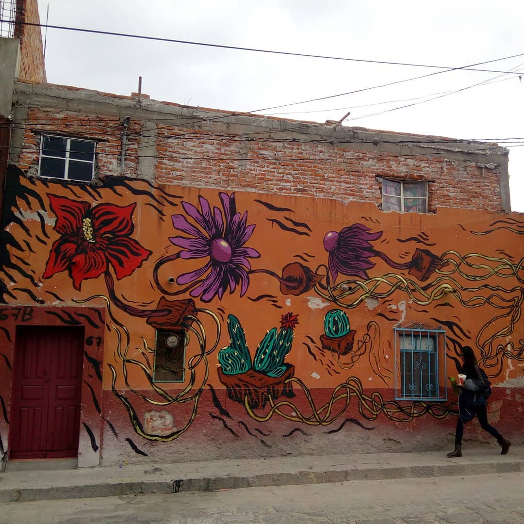 Flores del desierto, en #sanmigueldeallende muro parte del festival @murosenblanco gracias a @n30n3 por la invitación y la buena onda. Esperamos regresar pronto. #streetartsanmigueldeallende #streetartmexico #arteurbano #vlocke #floresdeldecierto #laguadalupe #graficamural
