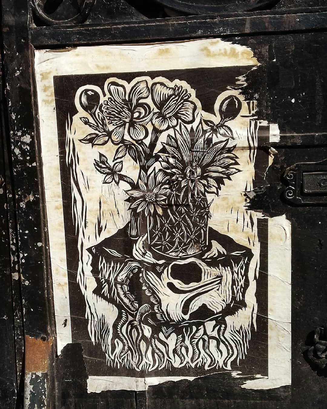 Cartel en Santa Maria la Rumbera. Repost @ginafontis #cartelismo #pegas #woodcut #prinmaking #vlocke #cdmx #repost #laverdemorada #enchulamelabici