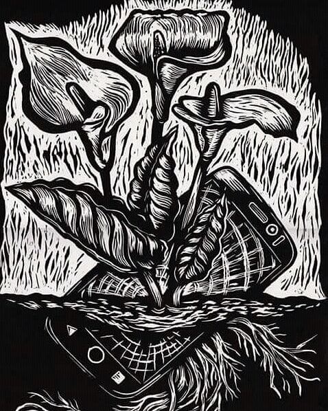Muerte tecnológica.Terminando esta edición. Para la carpeta #2 de #lamanada. #carpetagrafica #linocut #vlocke #prinmaking