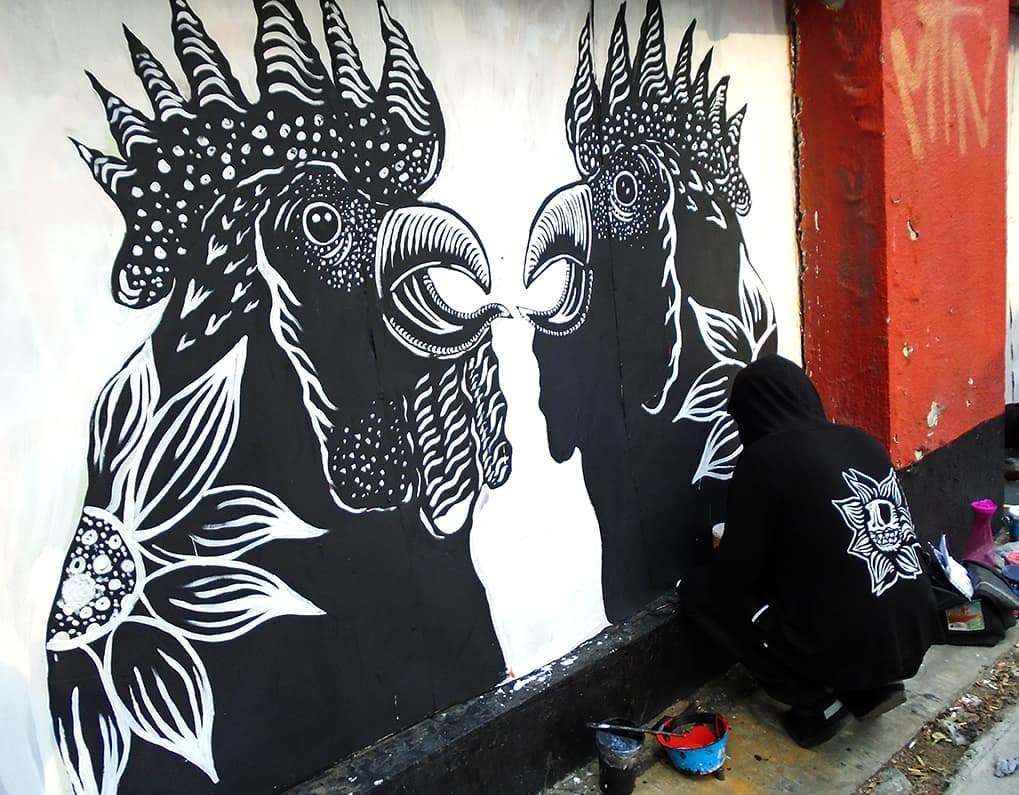 Frente al metro bus nuevo león, día de trabajo y de regreso a las andadas con @articuloscarmen . #vlocke #streetartmexico #gallonegro #graficamural #blackandwhite #insurgentes #globalstreetart #arteurbano