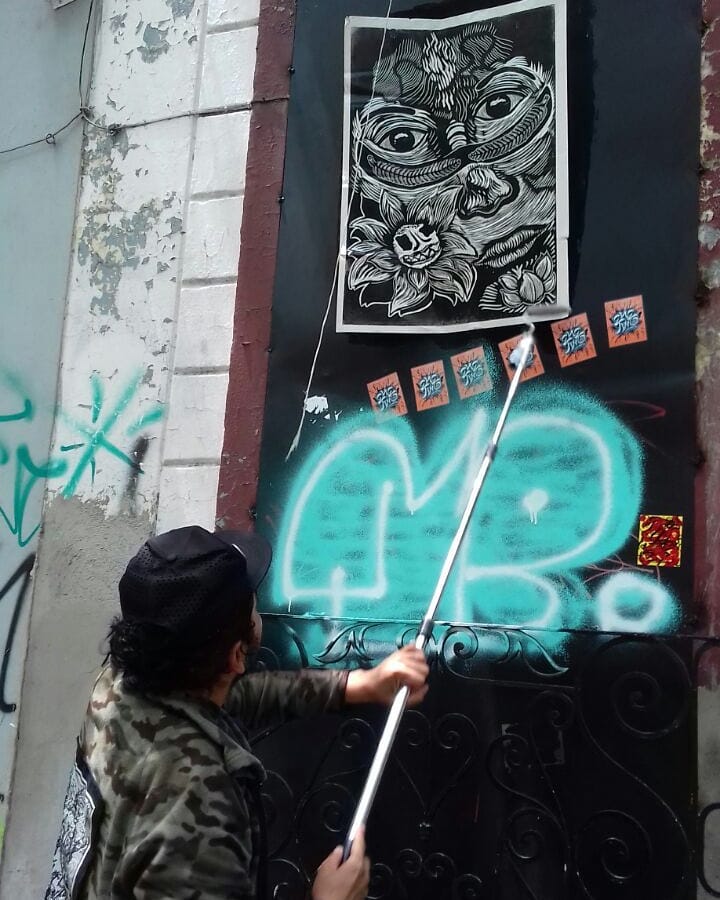 Dejando los pasos en Guadalajara!! 📷 de @articuloscarmen #vlocke #graficacontemporanea #grabado #pasteup #woodcut #streetart #globalstreetart #pegas #Guadalajara