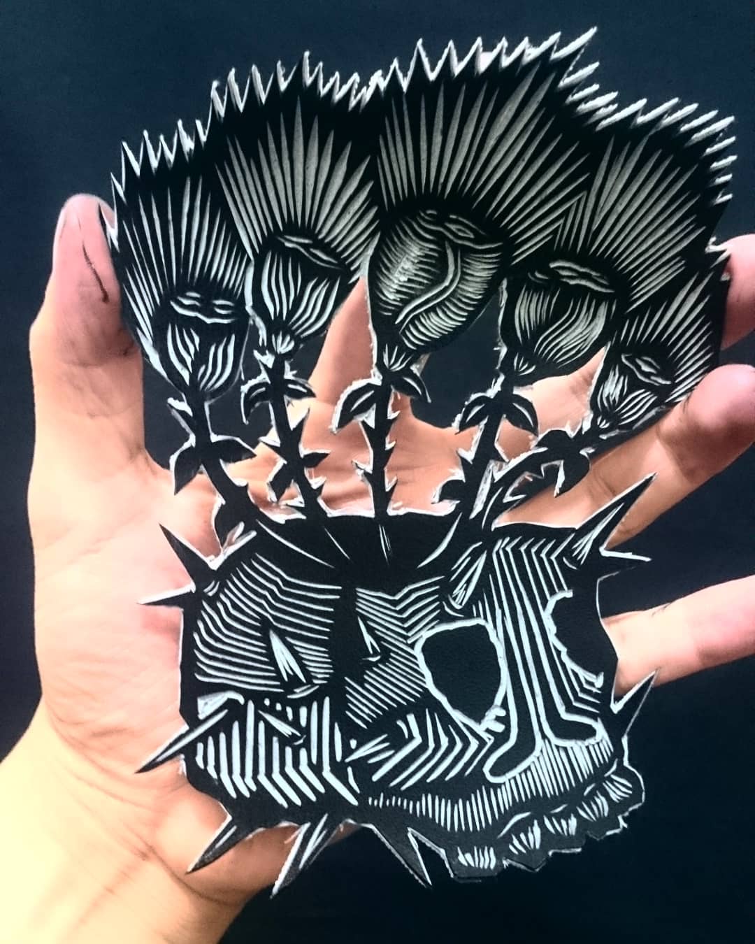 #linocut #florespunk #espinas #woodcut #prinmaking #graficacontemporanea #grabado #gubias #linoleo #skeleton #tallerlaardillamanca #taller #cdmx #Miniprint #mediotono #línea #cresta #impresión #ladoctores #graficamexicana