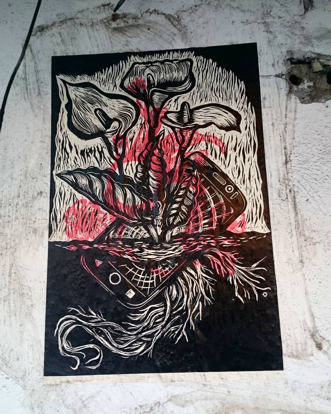 Alcatraces! #pegas #vicios #renacer #natural #graficacontemporanea #grabado #linocut #prinmaking #cdmx #vida #streetartcdmx #globalstreetart #pasteup #pasteupart #wheatpasteart #wheatpaste