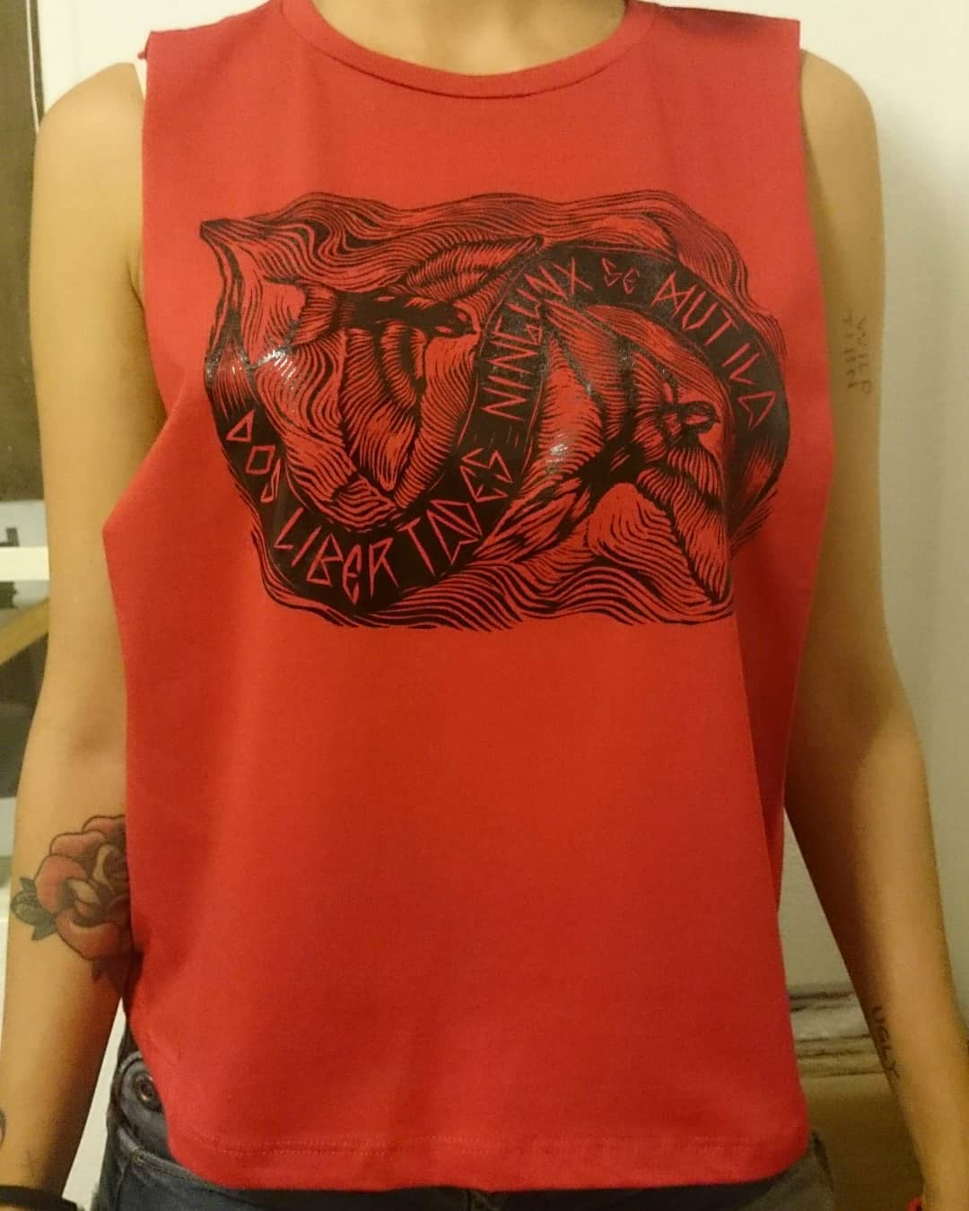 Ya tengo playeras con este grabado, Dos libertades, ningunx se mutila. Tengo blancas y rojas en corte de morra y en blancas para vatos. Están en 150, caigan a su puesto de confianza en la lagunilla o hago entregas en metro chabacano de la línea azul. También envíos nacionales.