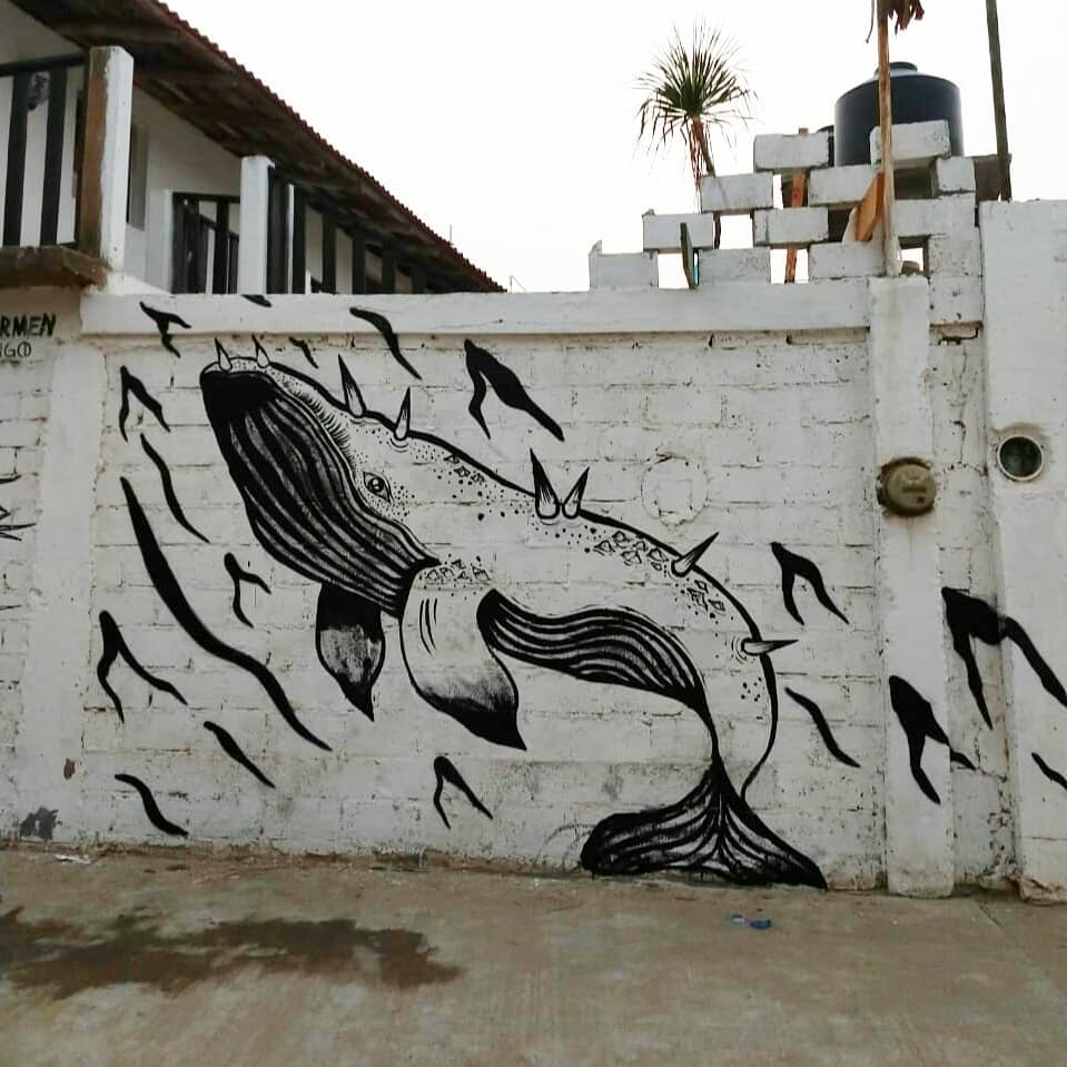 Una ballenita espinada muro en colaboración con @maxlongevo. #vlocke #ballenas #zopilote #zipoliteoaxaca #streetart #globalstreetart #playas #zipolitestreetart #oaxacastreetart #mar #Pacífico