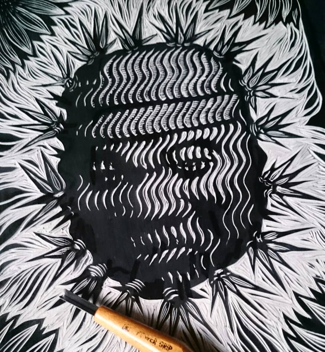 He estado trabajando este linoleo para el flayer de una venta/exhibición Pop Up que tendré este viernes 31 de mayo en el centro histórico de la cdmx en @street_lynx_mx, ubicado en plaza de la concepción # 26 a una cuadra de Garibaldi, donde podrán encontrar gráficas nuevas enmarcadas a un super precio, también pins y playeras. Así como una dinámica de impresión de prendas con stencil, en estos días los mantendré informados