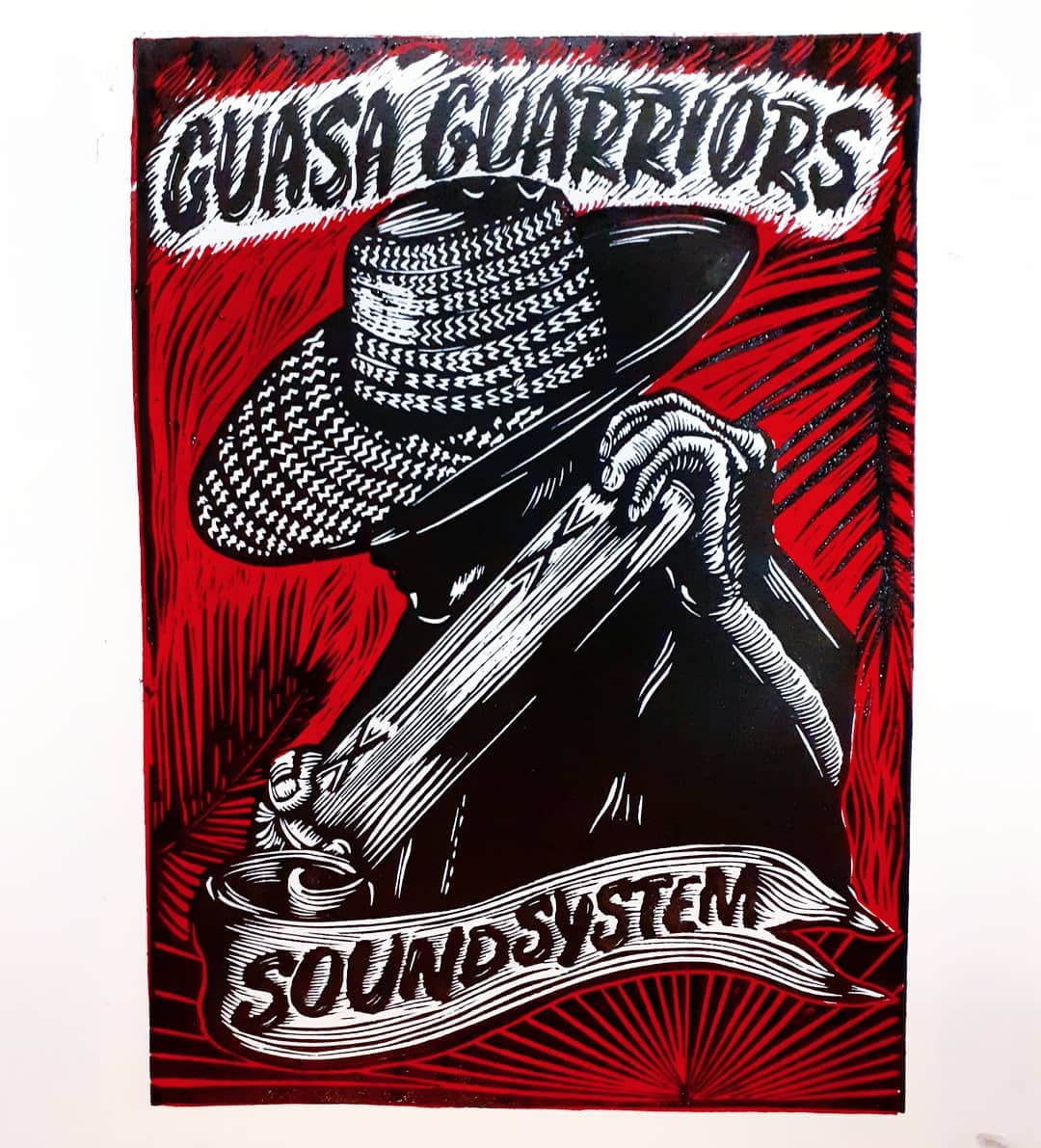 Grabado en linoleo a dos tintas, para el proyecto soundsystem Guasá Guarriors de mi amigo colombiano @enklab con base en Montreal, este verano se estará presentando en varias fiestas asi que caiganle.