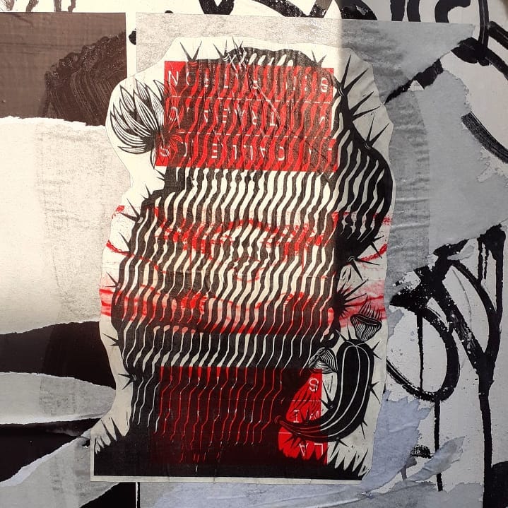 Pegas en Monterrey con @do.no.evil #wheatpasteup #pegas #elotrofestival #vlocke #riso #printmaking #print #linocut
