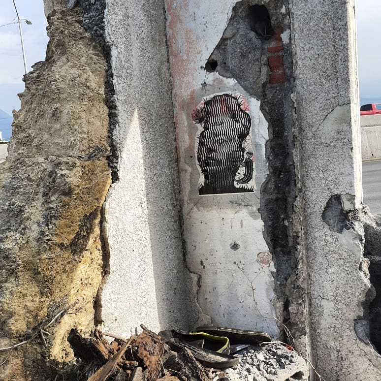 Pegas en Monterrey con @do.no.evil #wheatpasteup #pegas #elotrofestival #vlocke #riso #printmaking #print #linocut