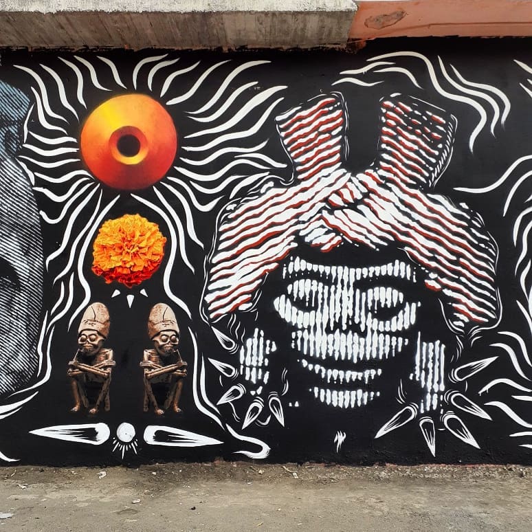 Pinta colaborativa con @himed_stencil @zukher85 y @hadestencil en Mixquic, cdmx. En este lugar se vive el día de los muertos de manera especial desde el tiempo de las culturas originarias. Fue muy grato el encuentro con las personas locales, gracias a @santa_cruz_grafica por el apoyo.