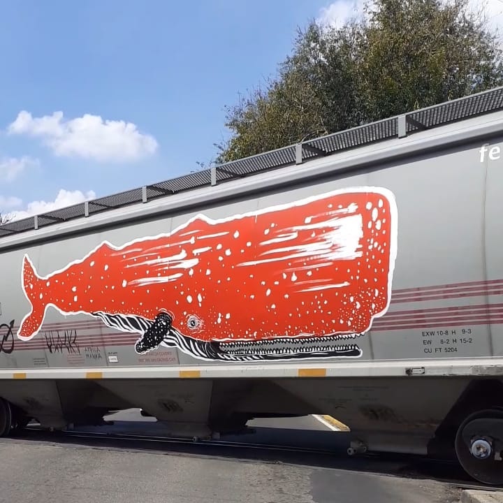 Sigue la serie de ballenas migrantes. #vlocke #trenes #walles #streetartpunk #ningunhumanoesilegal #imigrarnoesundelito #ballenas #streeart #globalstreetart