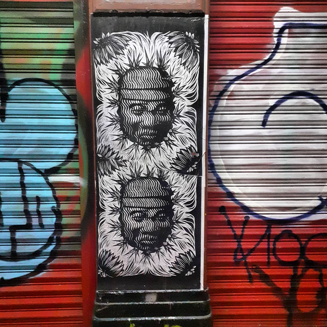 Noches!! #wheatpaste #pegas #propas #vlocke #cdmx #bahiabar #noches #night #steampunk #grafica #pasteupgrabado #pasteuplinocut #pegasdegrabado #cabezaolmeca #mediotono #grabadoenmediotono #cdmx #lajuarez