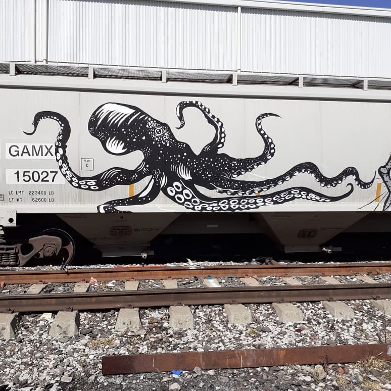 Muros moviles #trenmexico #tren #octopus #graffitiroller #rollinggraffiti #vlocke #octupus #mural #streetartpunk #streetart #globalstreetart #graficamural