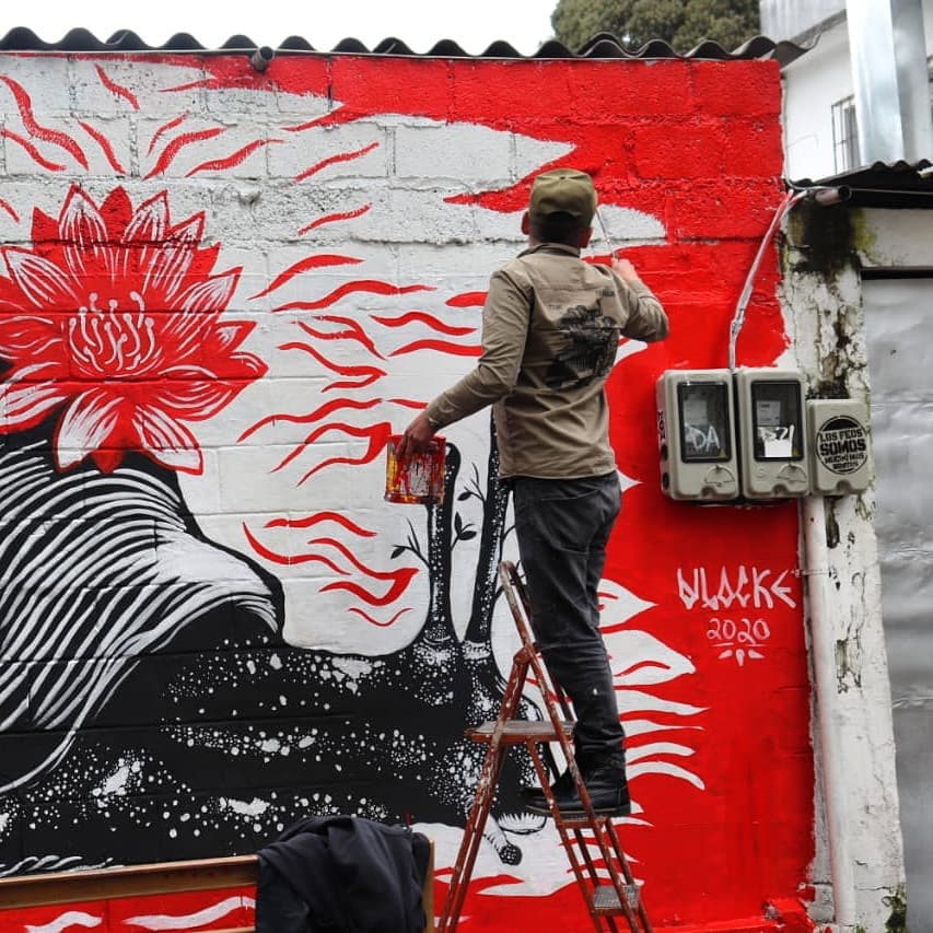 Proceso @nudostreetartproject Foto de @carouu_c #vlocke #caracol #ezln #lento #aloscaminos #mural #streetart #calles #quito #quitostreetart #globalstreetart #red #blackandred
