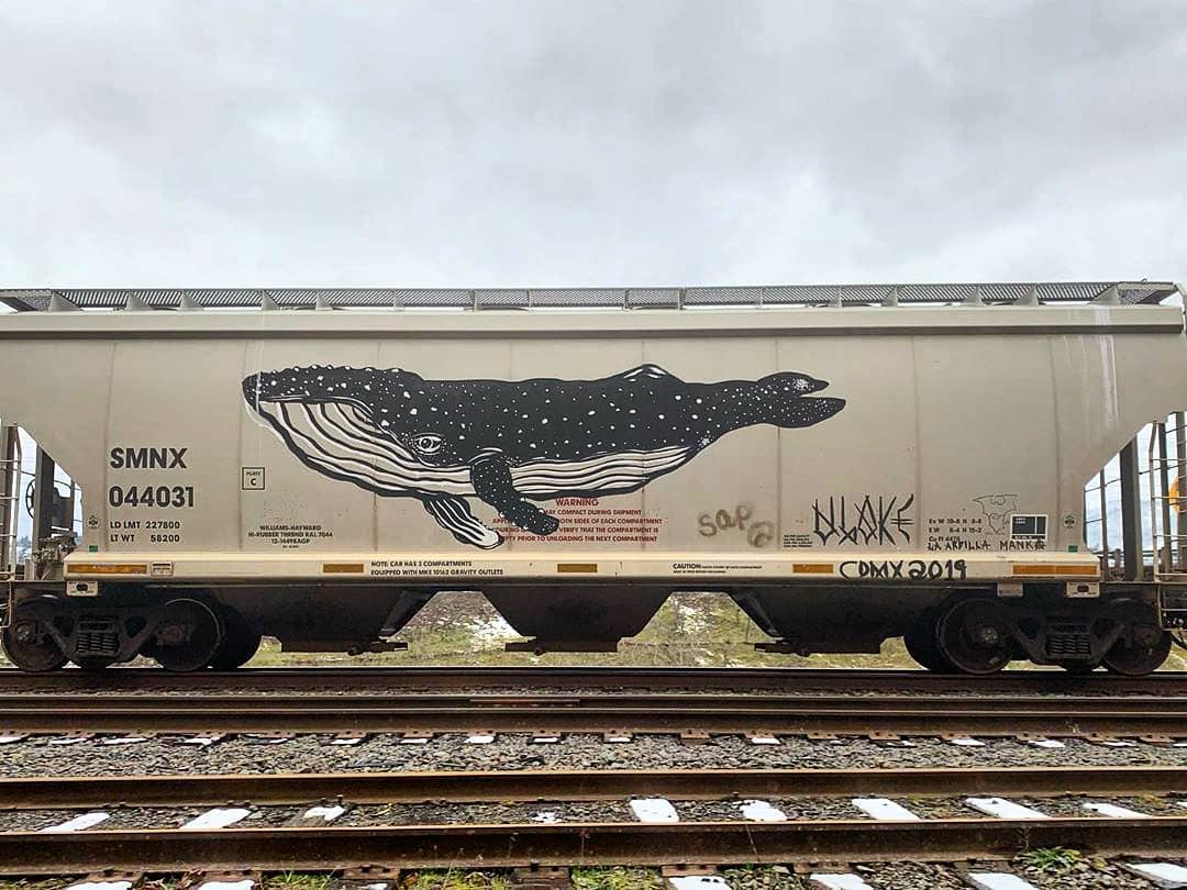 #tren #ningunhumanoesilegal #migración #inmigranteilegal #ilegalyque #ballenas #whale #rollingbonbing #rollergraffiti #vlocke #graffiti #arteurbano #streetart #train #railbox