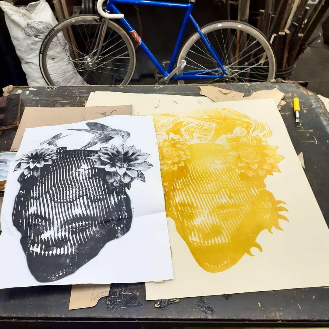 Pruebas de impresión en @lalinternacali. Con maquinas tipograficas de 1890. #letterpress #linocut #linocuting #printmaking #grabado #mediotono #vlocke #