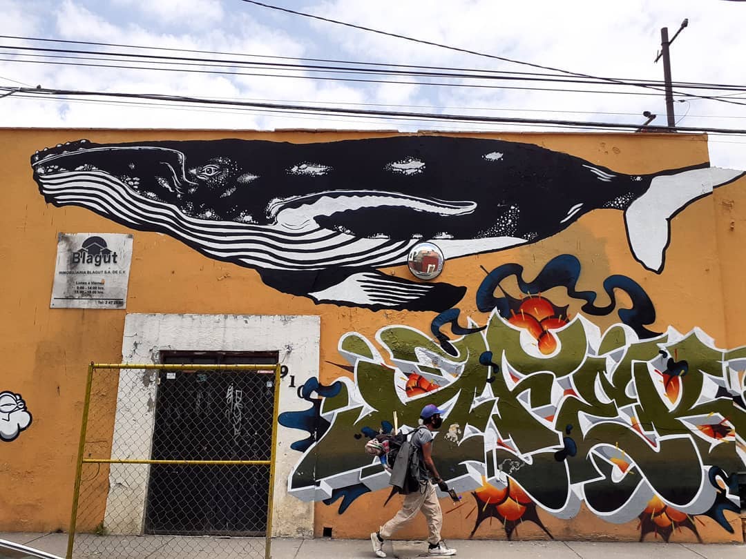 Ballena en Cholula. Otras narrativas fuera de las grandes ciudades Gracias a @casaflowrida Por esta estancia de producción en Cholula y a @n30n3 por el spot. #whale #ballena #ballenajorobada #vlocke #arteurbano #calles #streetart #arteurbano #pinta #muralart #mural #cholulastreetarts