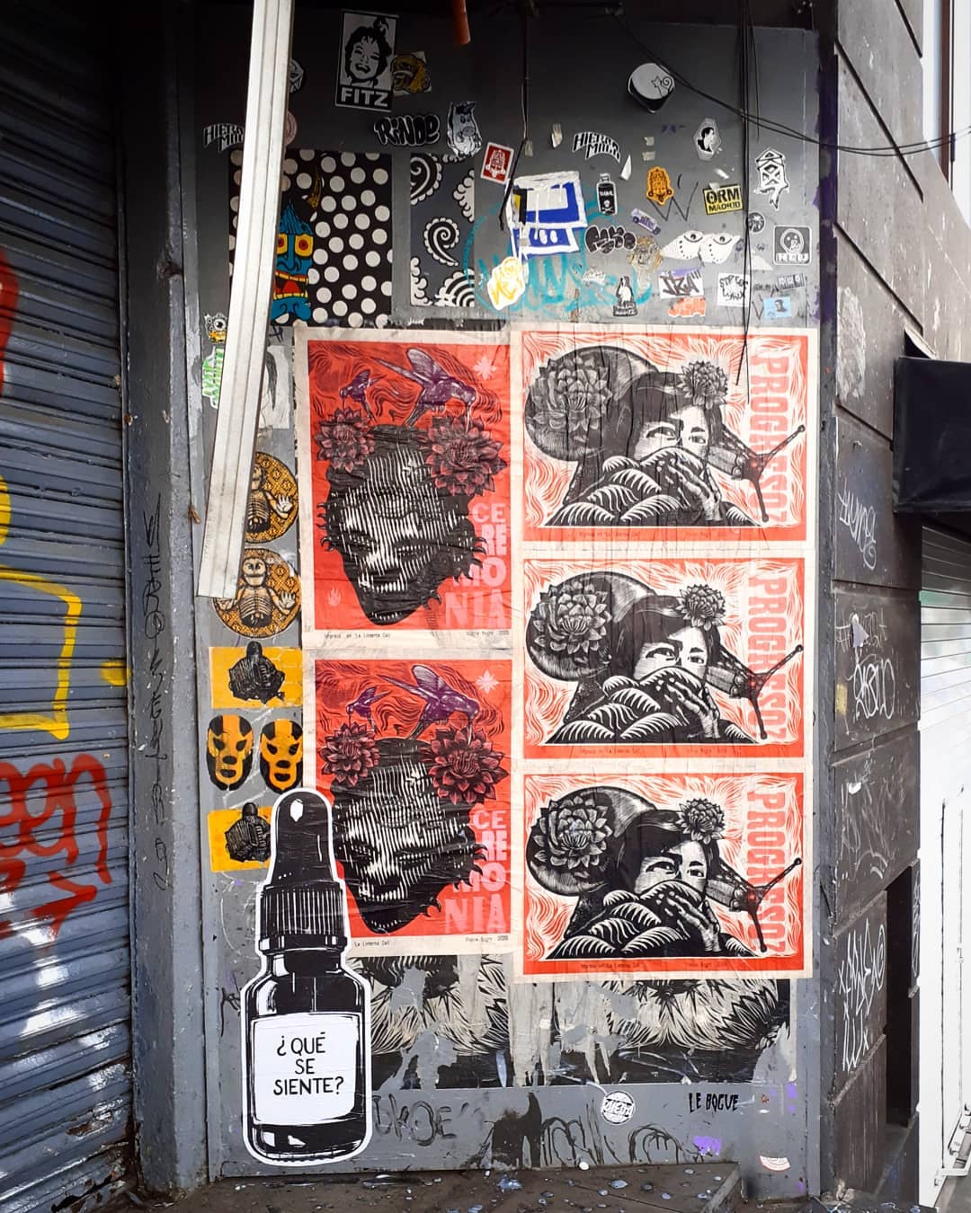 Día nublado y salida a pegar con los carteles que produje en el taller de @lalinternacali antes de la pandemia, "Ceremonia" y "Progreso ? Spot sobre eje Central, enfrente de Bellas Artes, casi se nos frustra la caminata por lluvia junto a @maldita.carmen y sus nuevas pegas.