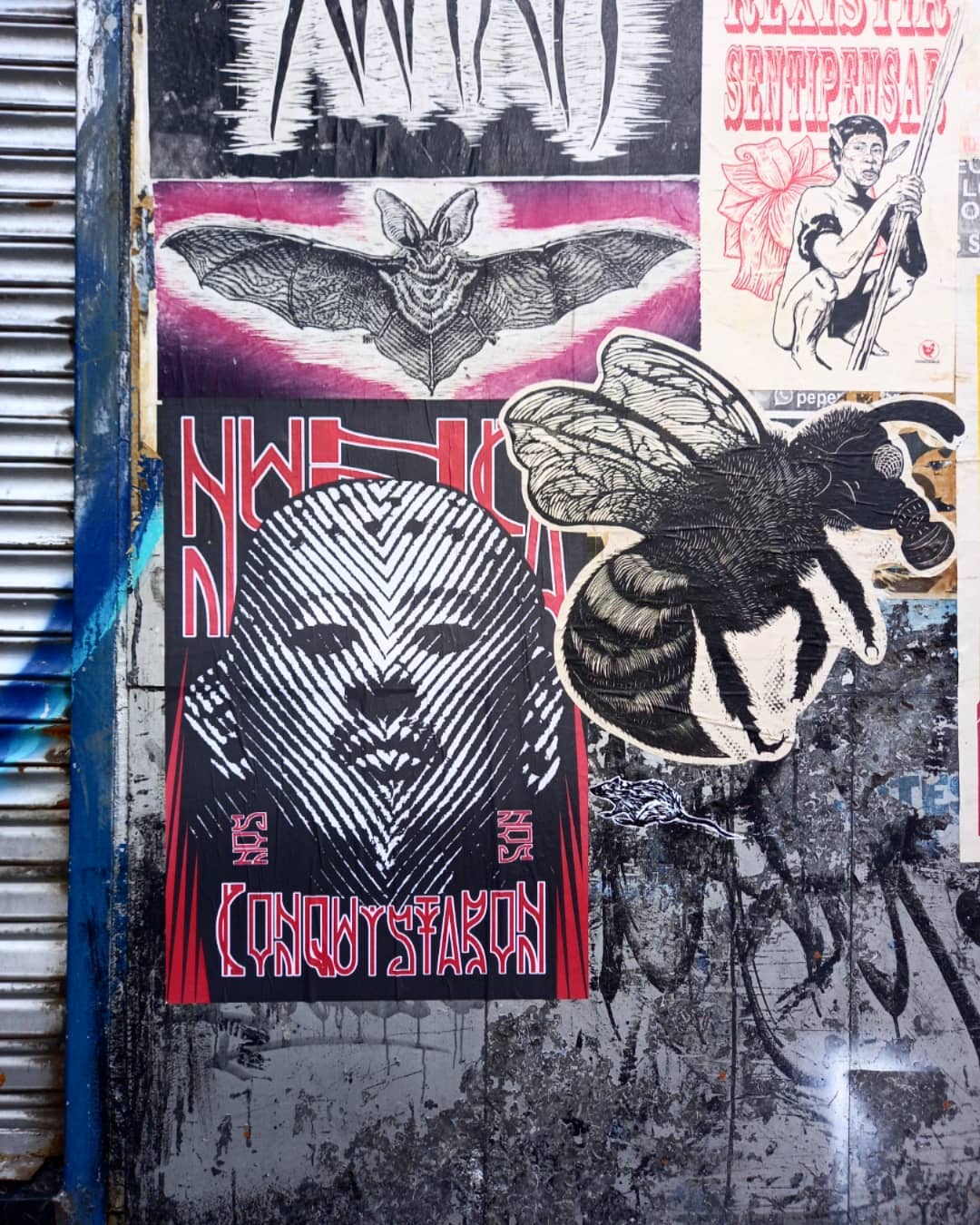 Día de pegas con @pca333 @tribv.bgta y @la_poli_lla. Ponchando carteles de @unxnadie @colectivoamapola @conspiro_calavero @lepridex