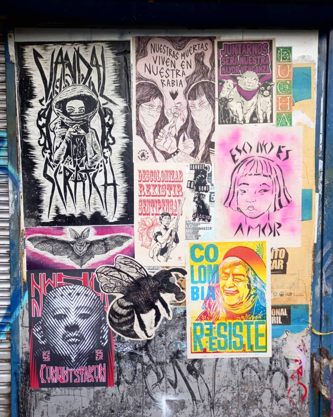 Día de pegas con @pca333 @tribv.bgta y @la_poli_lla. Ponchando carteles de @unxnadie @colectivoamapola @conspiro_calavero @lepridex