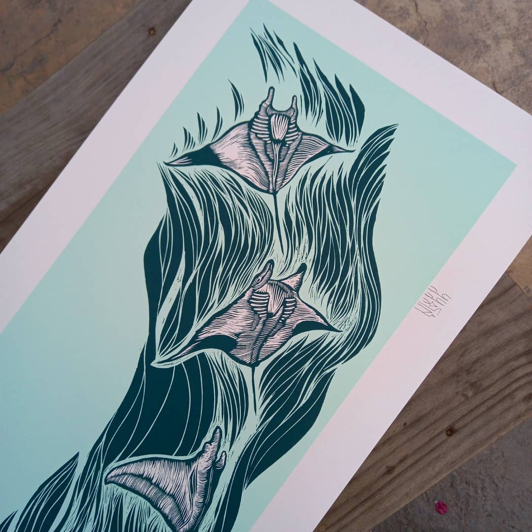 MANTARRAYAS, Última de esta serie Marina Serigrafía a dos tintas. 40x100 cm Papel 100% algodón Precio de 2400 pesos Enmarcada 2800 pesos mx Este fin de semana nos vemos en el mercado de arte en @foroindierocks de 12 a 7 pm. 11 y 12 de diciembre. Zacatecas #39