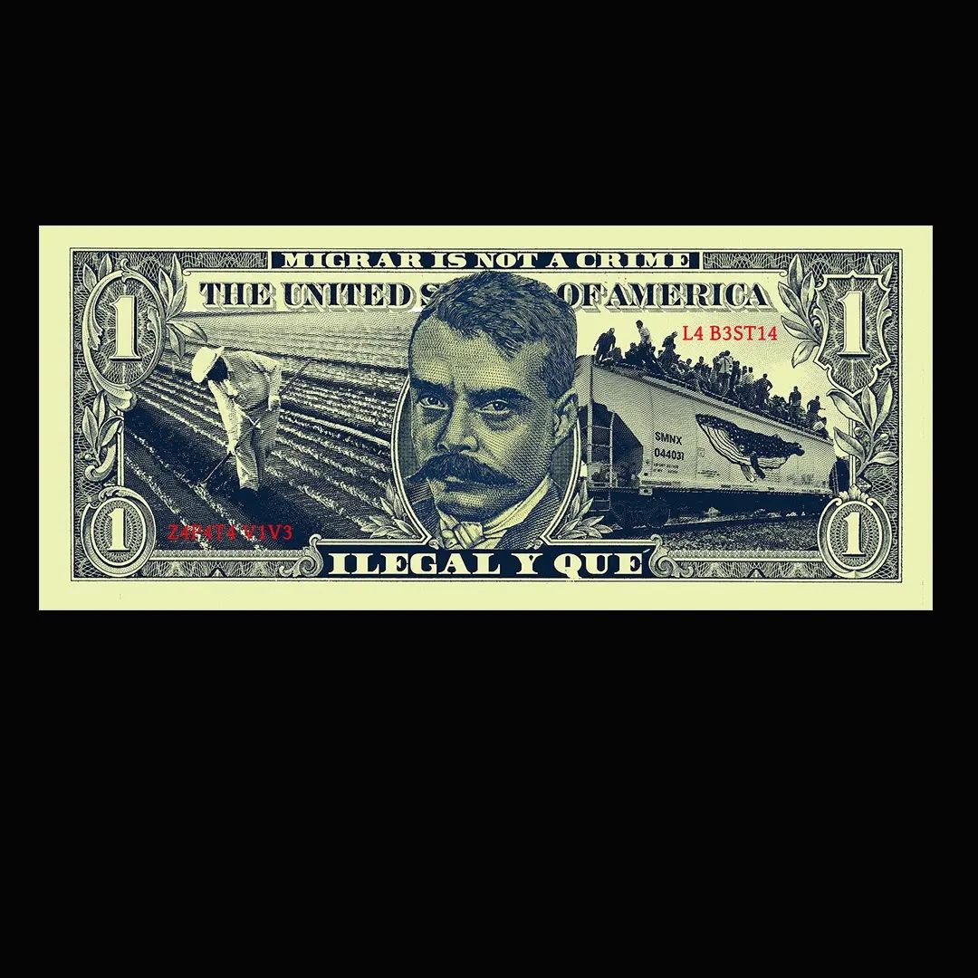 PREVENTA. Segunda serigrafía de papel moneda. Esta vez, tomo un tema recurrente en mi trabajo: el de la migración y La Bestia. La serie que toma como base al dólar me ha llevado en distintas direcciones siempre confrontando ideas y sentimientos que rebasan mis intenciones.