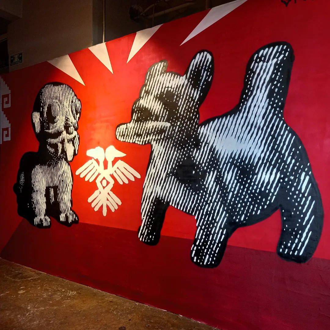 Zarigüeya ecuatoriana y Xoloitzcuintle. Para la noche especial de mis amigos @bertoce y @danielate_ muchas gracias por hacerme parte de la Reunión. #vlockenegro #stencilart #cdmx