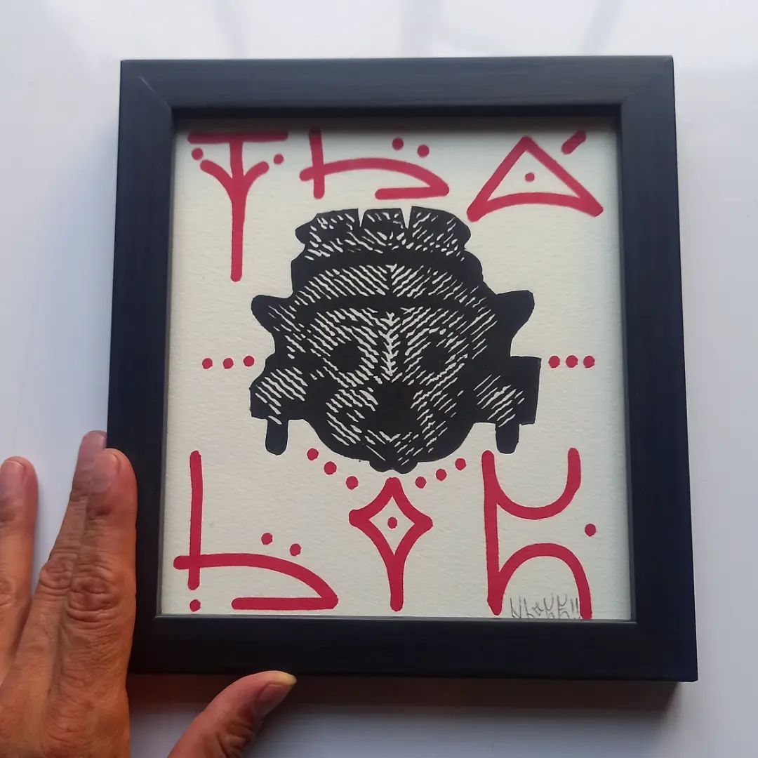 MiniPrint Tláloc 17x17cm Papel 100% algodón Precio de lanzamiento: 400 pesos mx enmarcado. 300 pesos sin marco Envios Nacionales e internacionales #linocutprint #vlockenegro