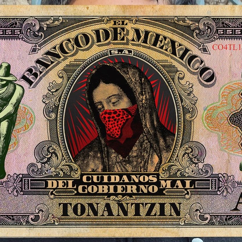"PREVENTA, Print Giclée Fine Art: Cuidanos del Mal Gobierno Tonatzin " Nuevo proyecto de billete que nos habla del sincretismo y la resistencia cultural que por más de 500 años a convertido a este territorio en un lugar complejo, crudo y surrealista.