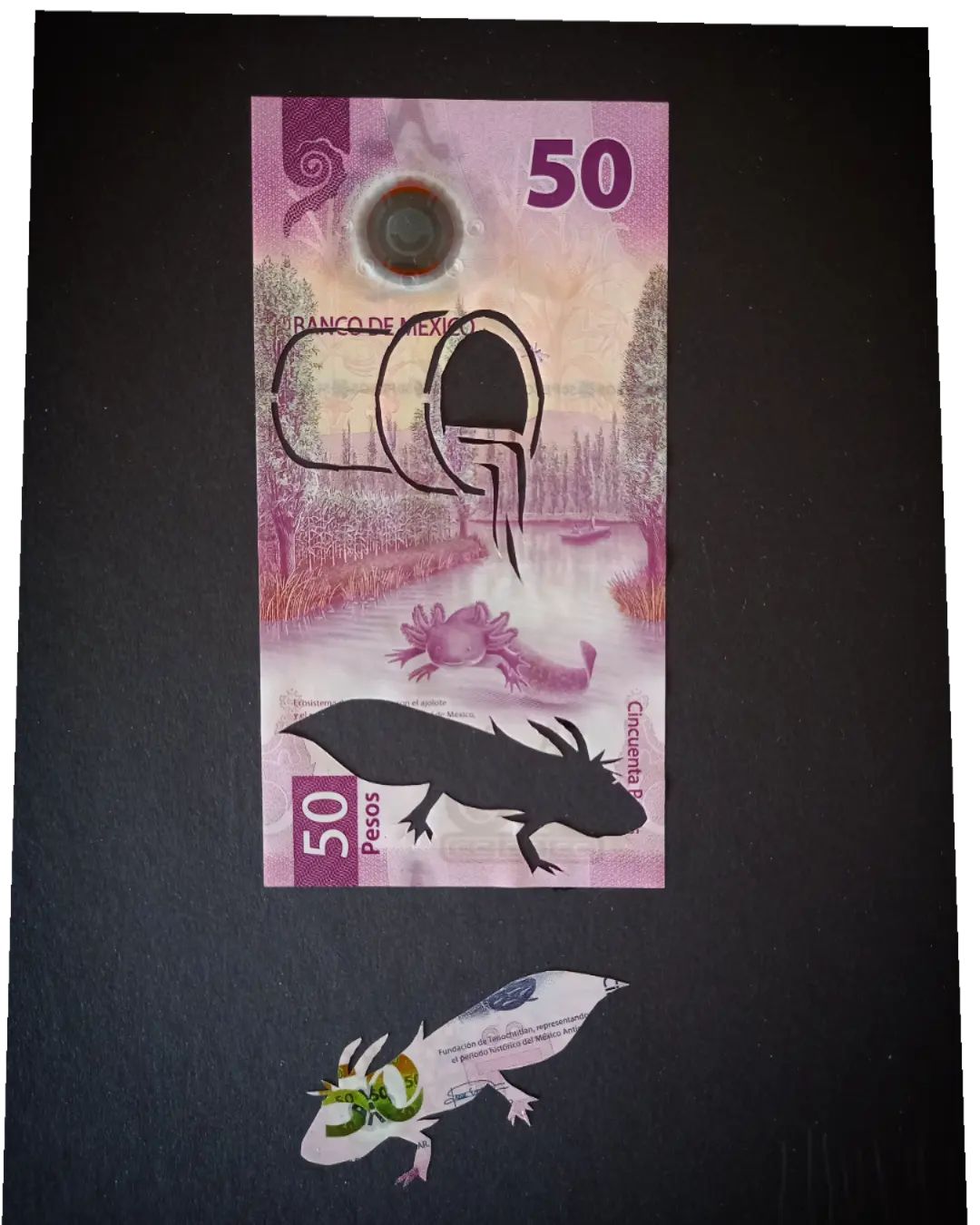 La Ubanización y la contaminación del agua así como la presencia de especies invasoras en su hábitat mantienen al ajolote en constante amezana. Collage anánalogo