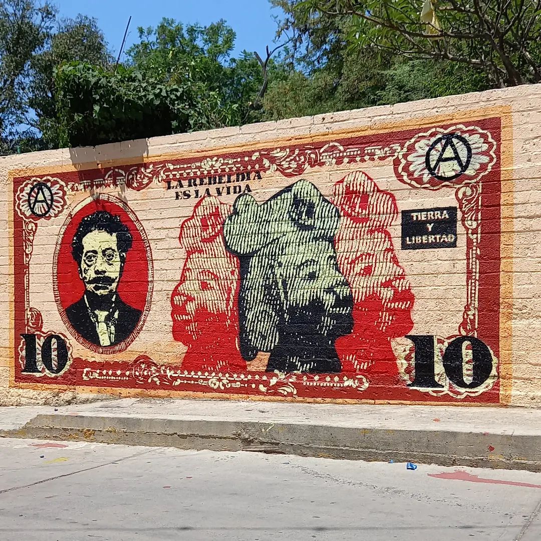 Billetón Magonista, en Teotitlan Oaxaca, fué en esta región y la sierra norte del estado donde nacierón los hermanos Flores Magón, políticos y periodistas perseguidos y encarcelados por el regimen porfirista, abrazaron la lucha armada e ideas más radicales de la revolución mexicana, lxs magonistas buscaban cambios más profundos llegaron a plantear la abolición del Estado y la propiedad privada. El pensamiento libertario de los Flores Magón es una amalgama entre la concepción comunitaria de la vida en los pueblos indígenas, la tradición liberal mexicana del siglo XlX y el pensamiento de filosofos anarquistas europeos. En el otro costado presento Xantiles deidades adoradas hasta la actualidad en la región. Son concideradas protectoras y se les ofrenda flores y veladoras. Es común hallarlos bajo pisos de habitaciones de las casa, fueron enterradas de manera intencional para ocultarlos de los evangelizadores quienes las buscaban afanosamente para destruirlas en la época colonial. Proyecto para el Festival Teotitlan 2023, gracias a @axolotlcollective por la invitación