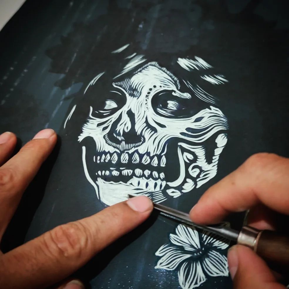Trabajando Catrina, para las muerteadas. #grabado #linocutprint #linocut #graficapopular #catrina