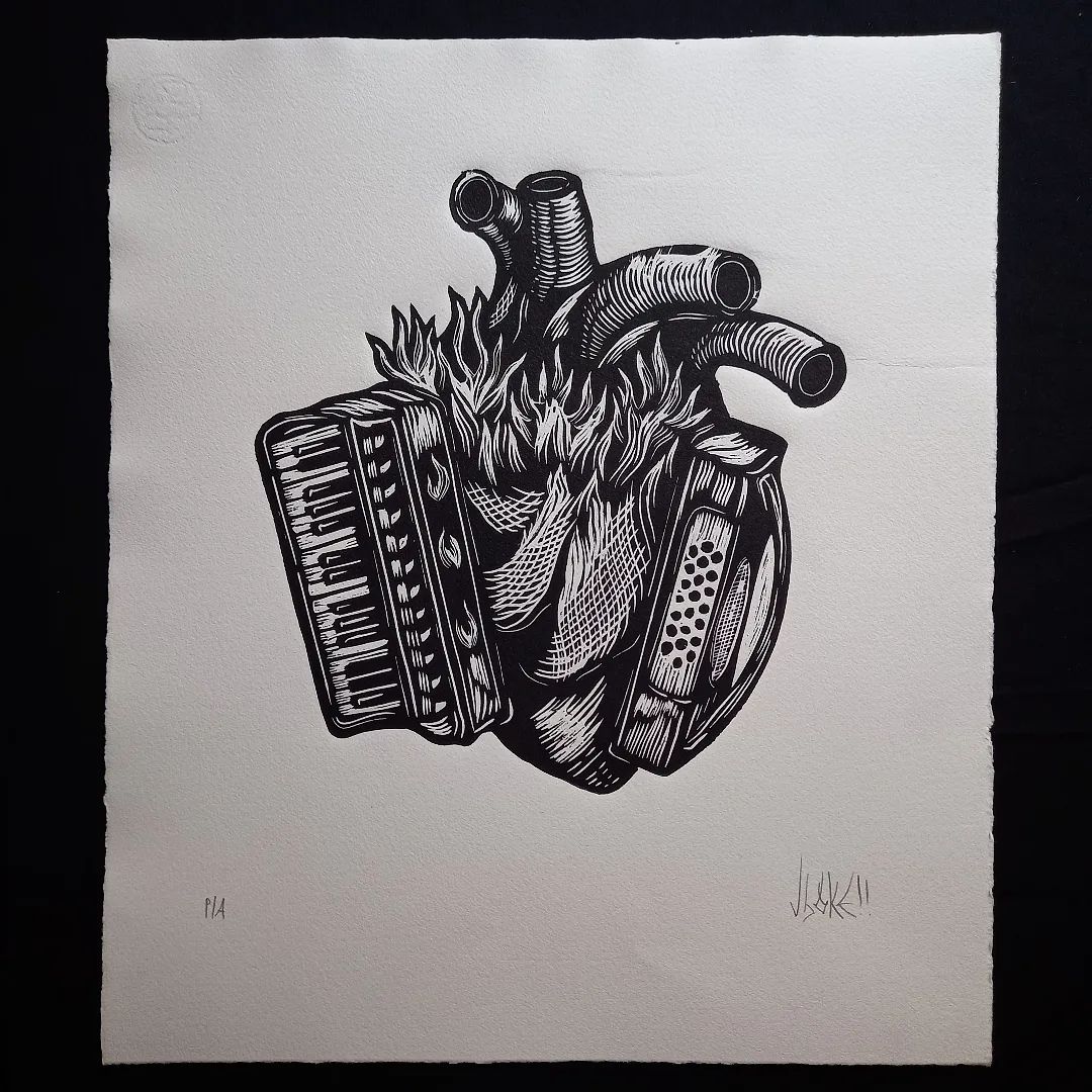 Grabado en lin贸leo $980. Sobre papel 100% algod贸n de 260gr, 50x80cm.