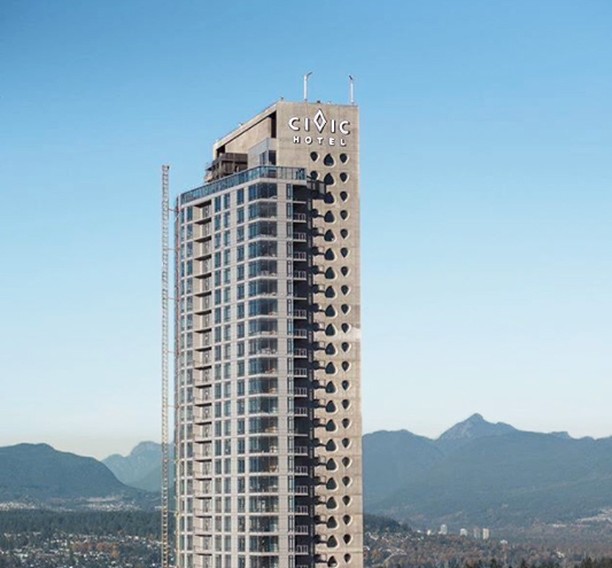 Did you know that the #CivicHotel logo is the highest commercial sign in all of British Columbia? Our team incorporated skilled engineering to move the metal framework atop the project’s massive, 54-storey residential tower. Now everyone can witness the beautiful logo design @korn_design created for us! #wearecivichotel #brandedbykorn #signage #construction #hotel #branding #surreybc