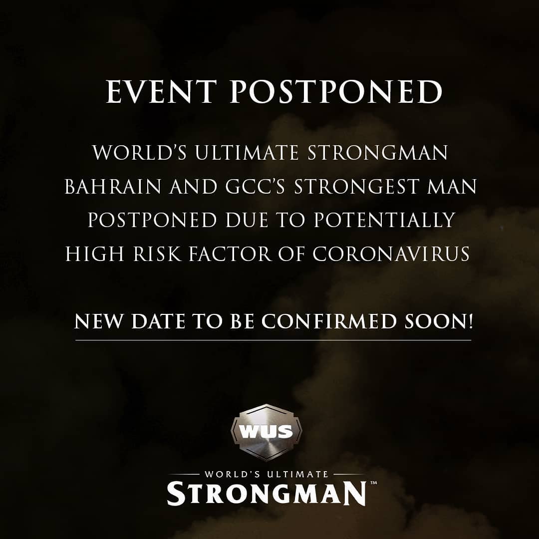 Sadly we have to inform everyone that due to the current state of affairs, the travel bans, the high contagion risk of the coronavirus we have to postpone our April 11th show in Bahrain along with GCC's Strongest Man