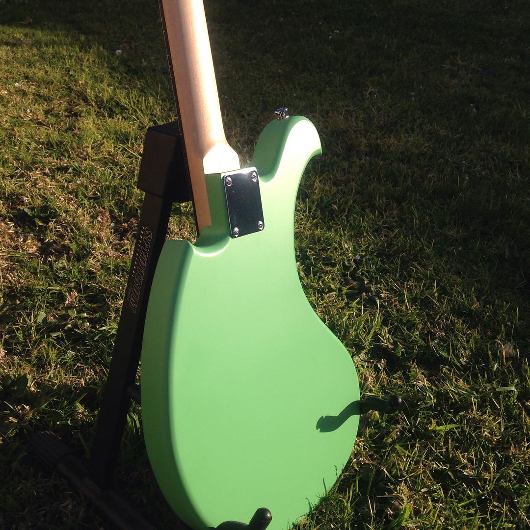 This bad boi heading over to @lechatdevenus in Paris on Monday. Huge thanks to Etienne for my first international order, to @pro_paint_guitars for the top shelf paint job, and Rossi for the setup. Specs: Macassar ebony fretboard, rock maple neck, New Guinea rosewood body. Gfs nyIIs, gotoh tuners, wilkinson bridge, cts pots and switchcraft jack. Sounds goooood 🤙