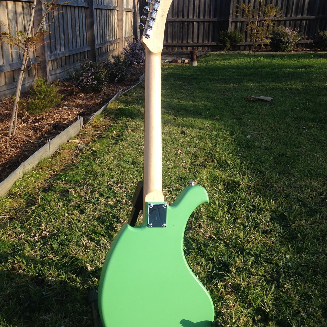 This bad boi heading over to @lechatdevenus in Paris on Monday. Huge thanks to Etienne for my first international order, to @pro_paint_guitars for the top shelf paint job, and Rossi for the setup. Specs: Macassar ebony fretboard, rock maple neck, New Guinea rosewood body. Gfs nyIIs, gotoh tuners, wilkinson bridge, cts pots and switchcraft jack. Sounds goooood 🤙