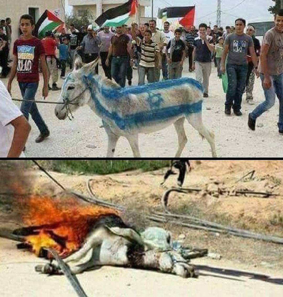 Aberrante, movimientos pro palestinas pintaron un burro con los colores de la bandera Israel y lo quemaron vivo… 😔 ¿Se puede ser más HDP que un zurdo bastardo?