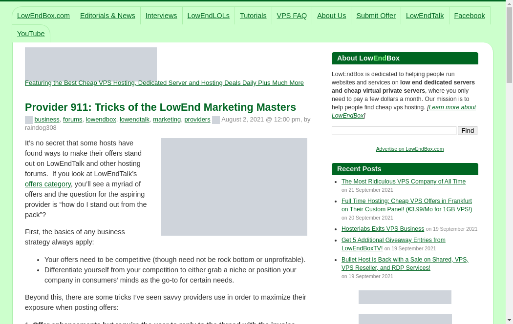 | https://lowendbox.com/blog/provider-911-tricks-of-the-lowend-marketing-masters/ | Tue, 21 Sep 2021 21:25:05 GMT | Archived webpage |
