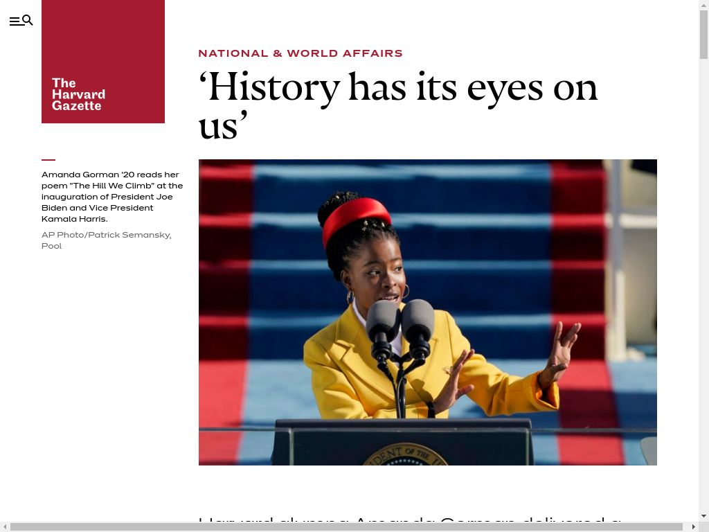| https://news.harvard.edu/gazette/story/2021/01/amanda-gormans-inauguration-poem-the-hill-we-climb/ | Tue, 21 Dec 2021 21:05:07 GMT