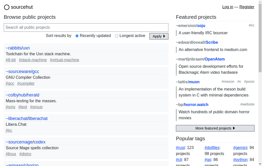 | https://sr.ht/projects | Sat, 30 Oct 2021 18:19:03 GMT | Archived webpage |